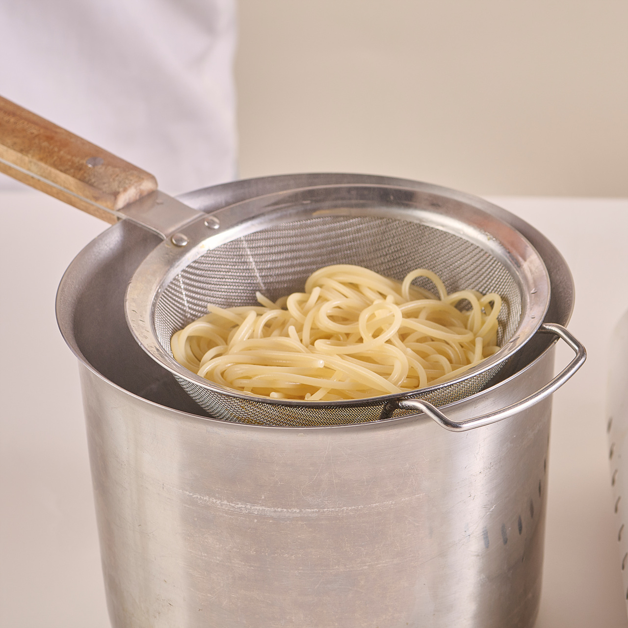 냄비에 물 2L, 소금 1스푼을 넣고 끓여주세요. 물이 끓어 오르면 스파게티면을 넣어 7분간 삶아 주세요.