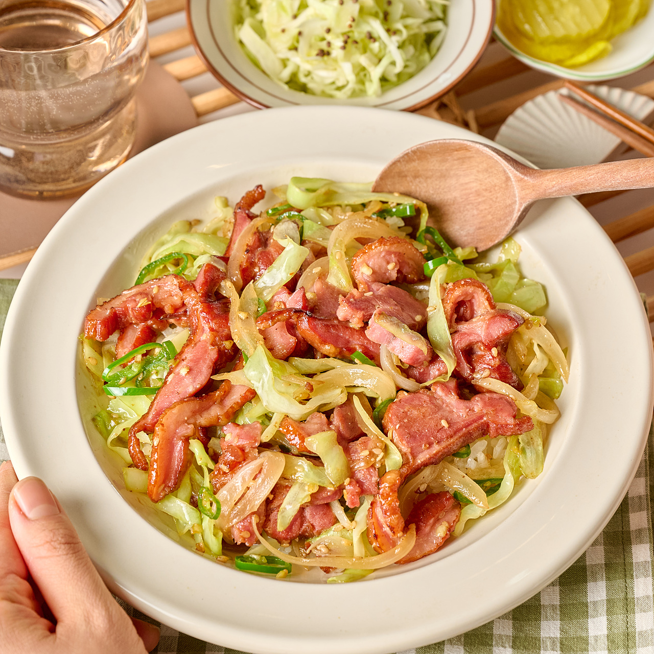 좋아하는 채소와 훈제오리 볶아 밥 위에 톡!