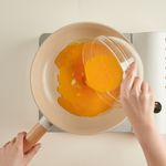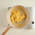 팬에 식용유를 두르고 중약불로 예열한 뒤, 달걀물을 붓고 젓가락이나 고무주걱으로 천천히 저어가며 약 1분간 익혀주세요. 몽글몽글한 덩어리가 생기고, 촉촉한 상태가 되면 완성이에요!
