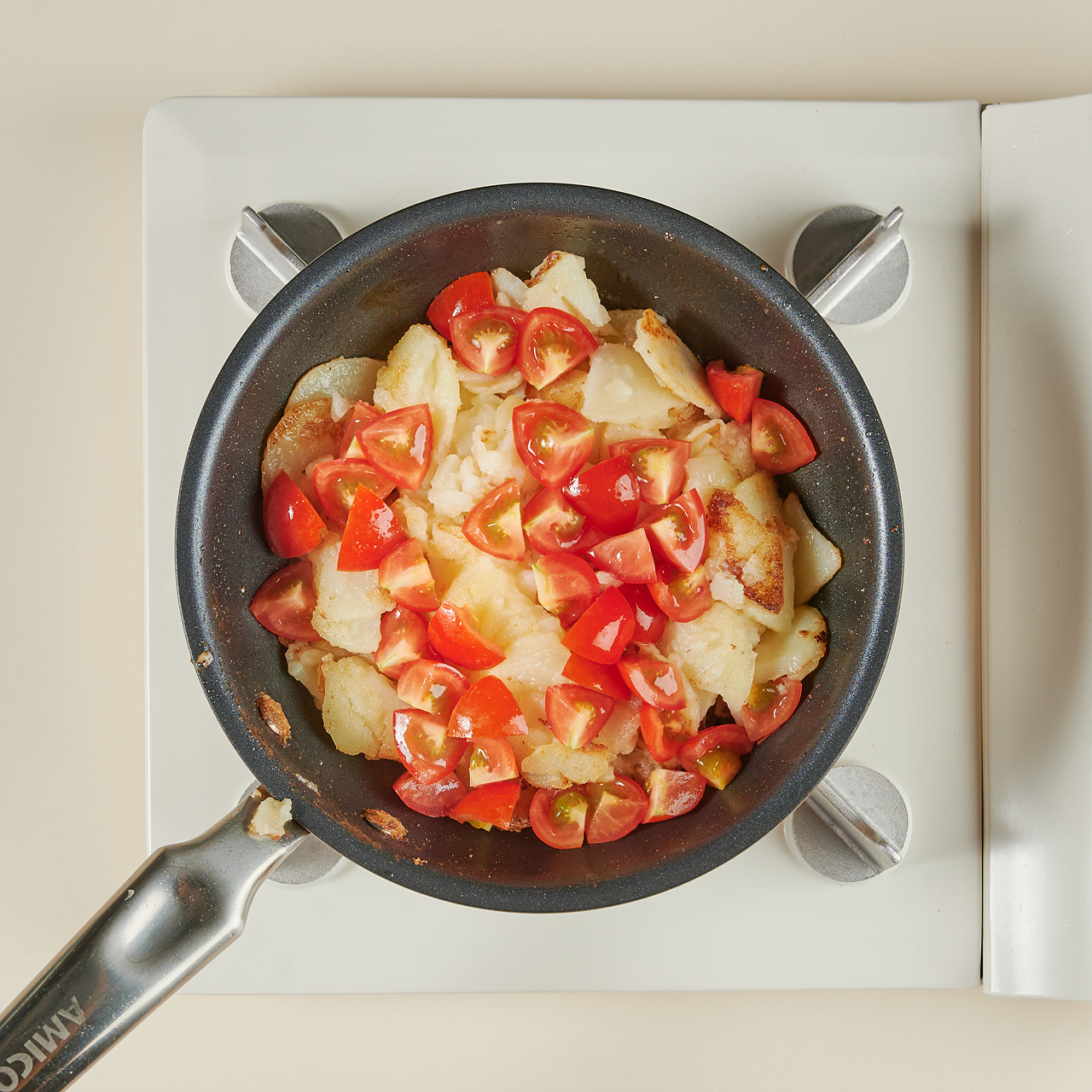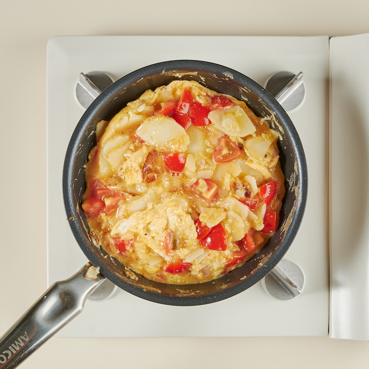 잘 익은 감자에 새콤한 토마토가 들어간 두툼 오믈렛