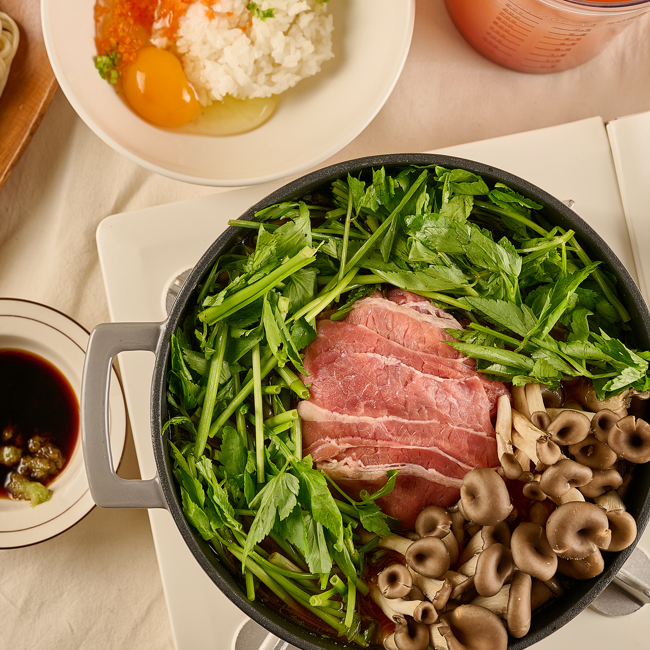 육수에 샤브샤브용 고기를 넣고 원하는 만큼 익혀주면 완성!