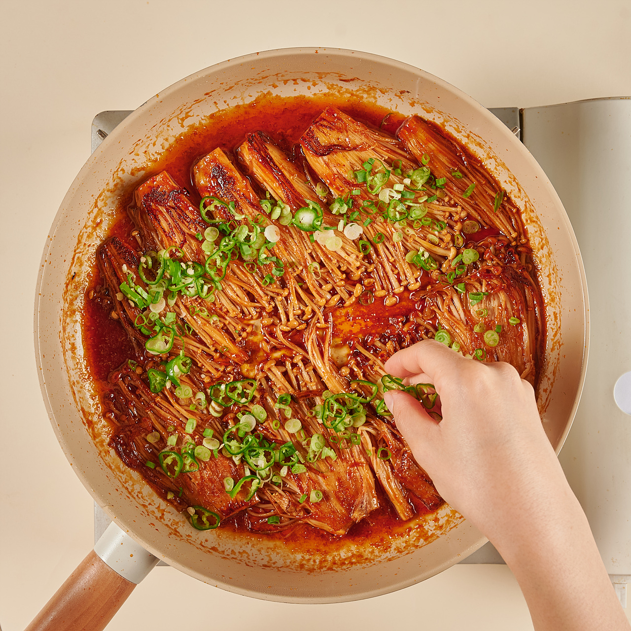매콤꾸덕 소스와 쫄깃한 팽이의 만남