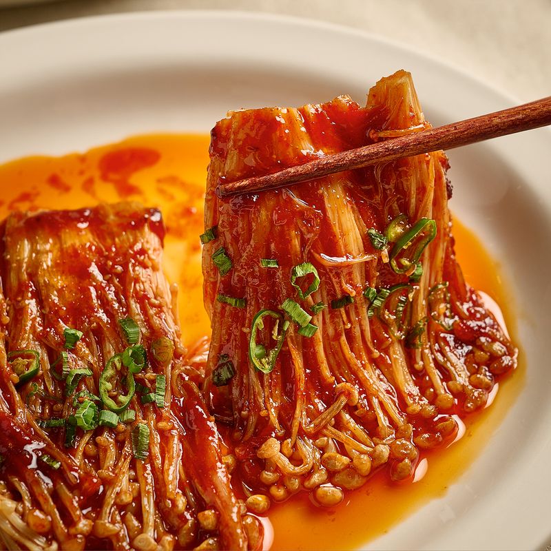 매콤꾸덕 소스와 쫄깃한 팽이의 만남
