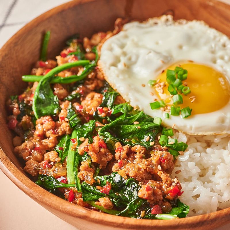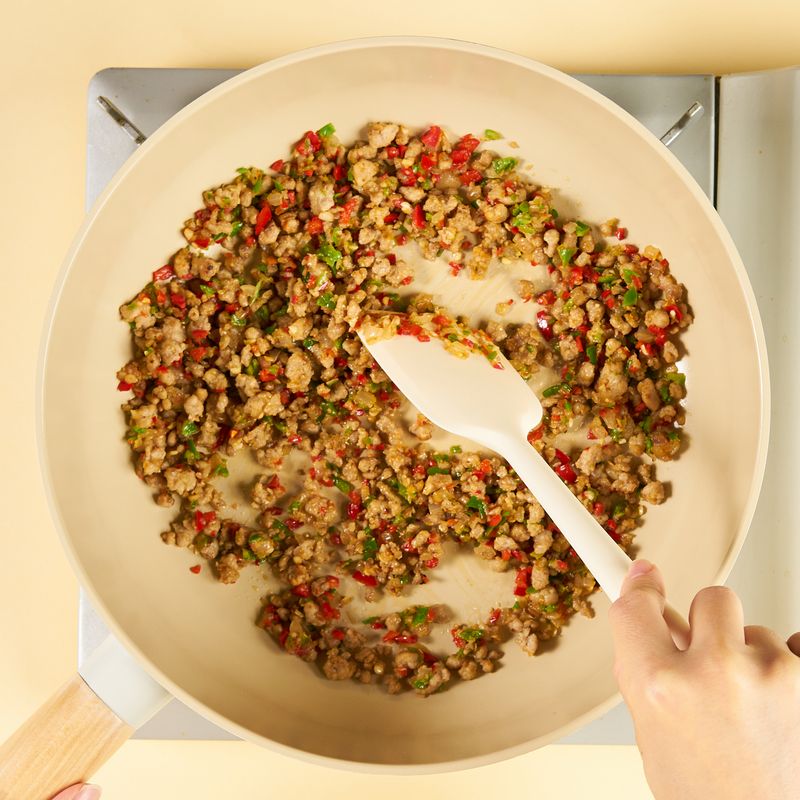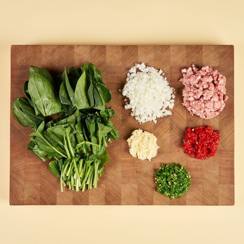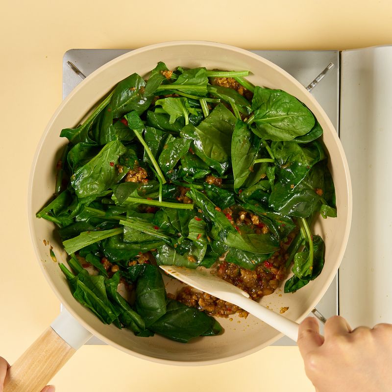 돼지고기와 함께 볶아 고소한 시금치 요리