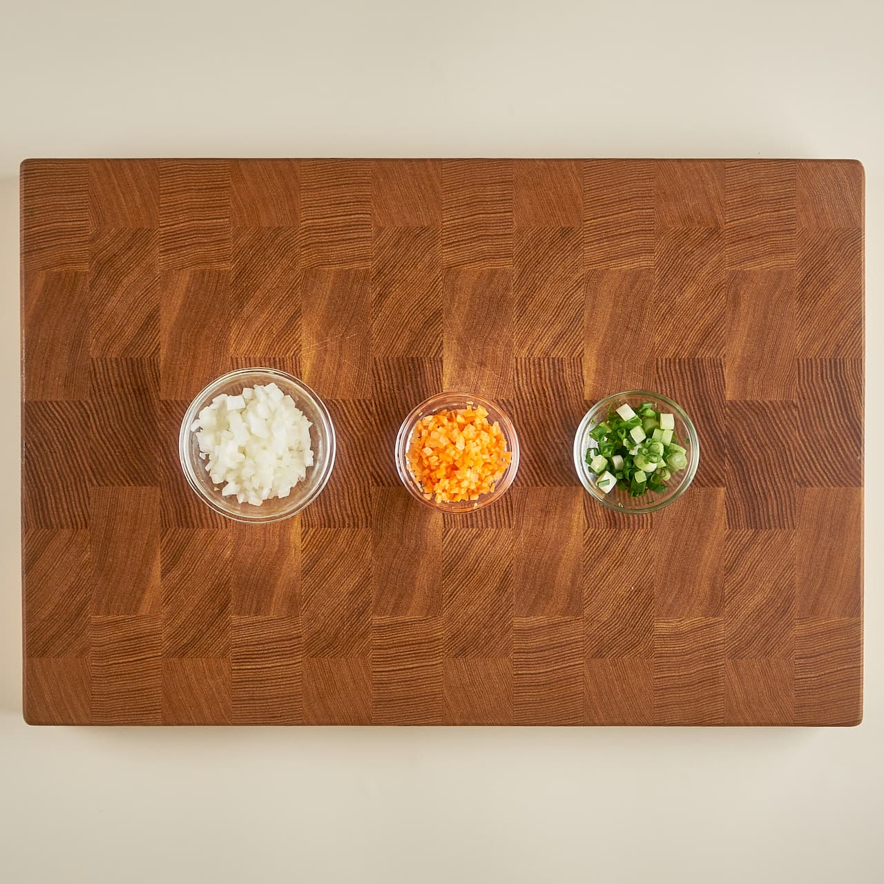 양파와 당근은 잘게 다져주고, 쪽파는 송송 썰어서 준비해주세요.