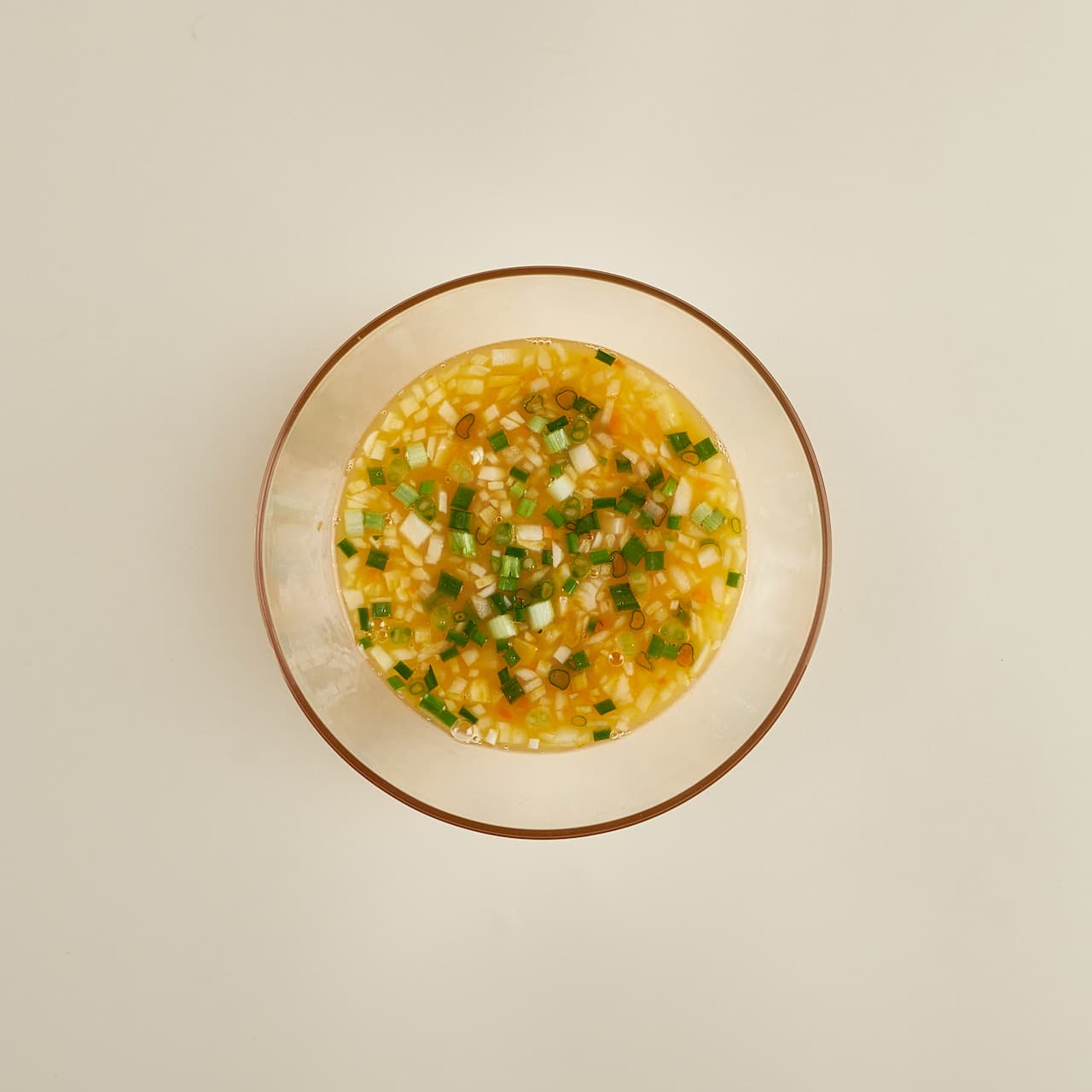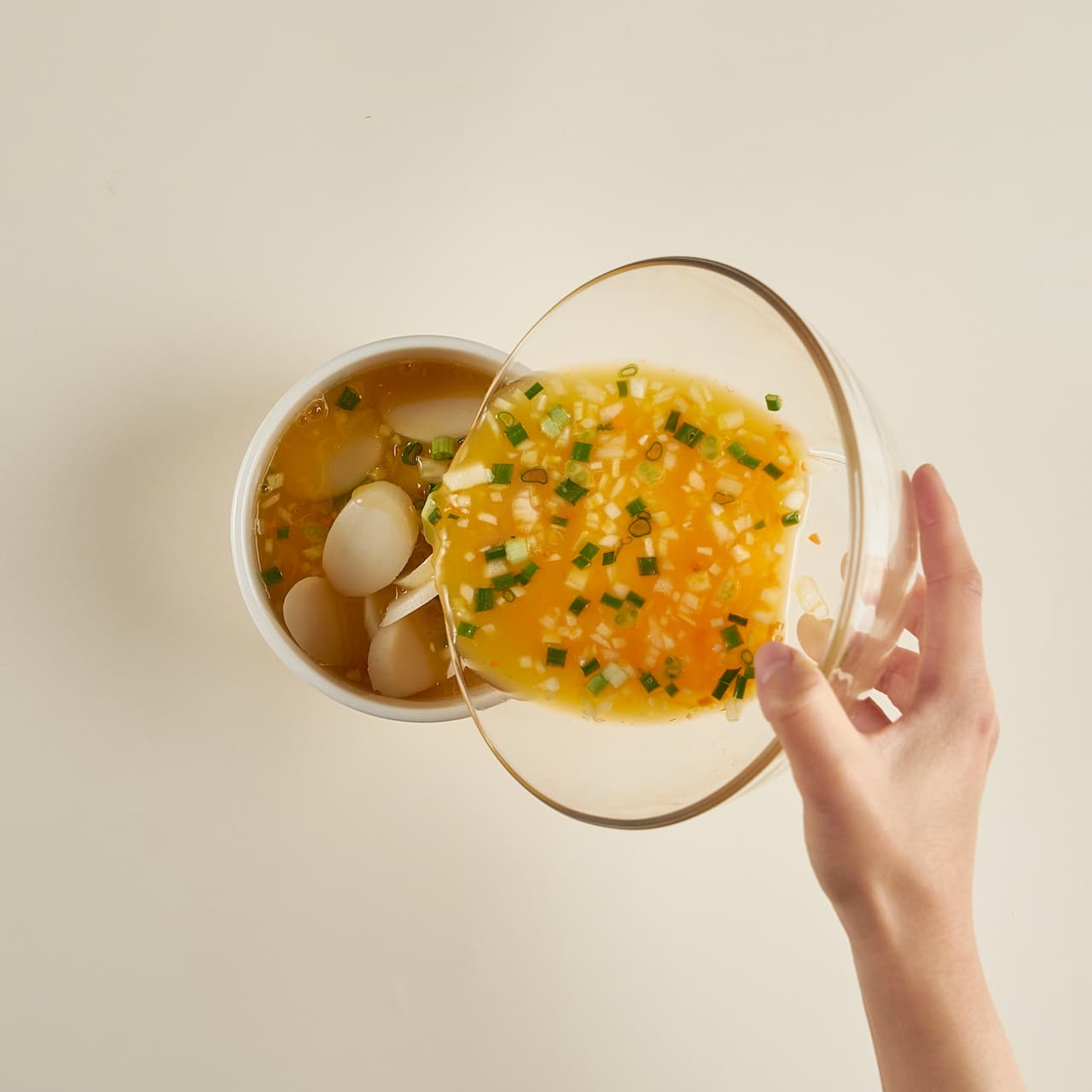그릇에 달걀, 준비한 채소, 물, 연두순을 모두 넣고 골고루 섞어 주세요.