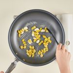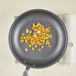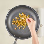 프라이팬에 버터를 녹인 후, 중불에서 마늘과 은행을 약 3~4분간 노릇하게 구워주세요.