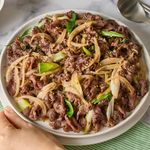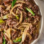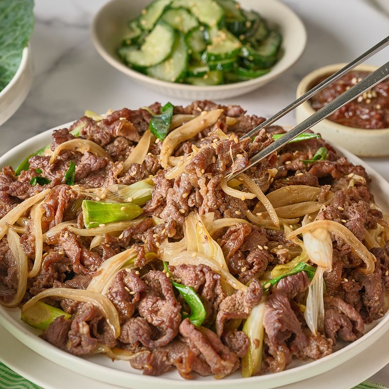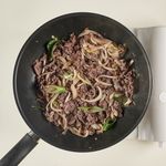 중불로 예열한 팬에 양념에 버무린 불고기를 넣고 고기가 완전히 익고 양파가 투명해질 때까지 7~10분 동안 볶으면 완성!