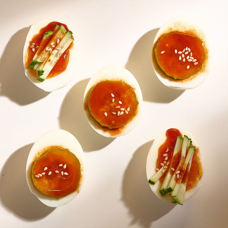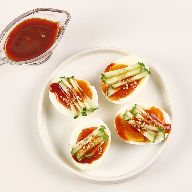 삶은달걀에 오이와 초고추장 올린 별미