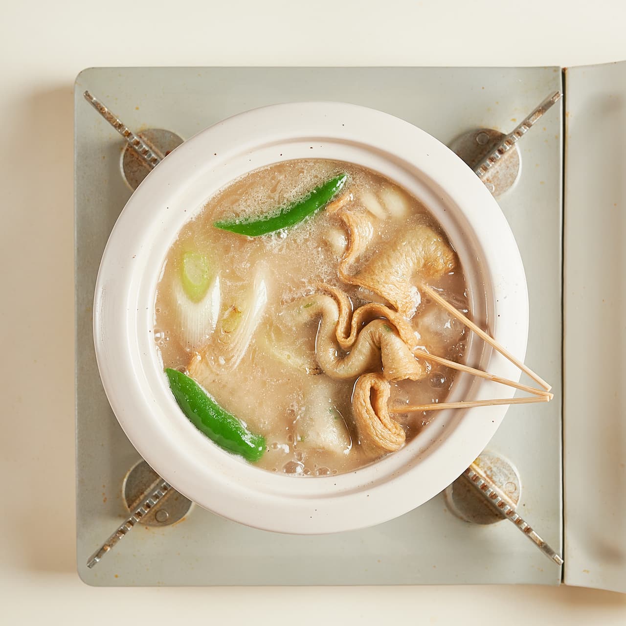 차오차이 백탕훠궈소스와 물을 넣어 센 불에서 한소끔 끓인 후, 손질한 무와 청양고추, 어묵을 넣고 무가 익을 때까지 중불에서 약 8~10분간 더 끓여 주세요.