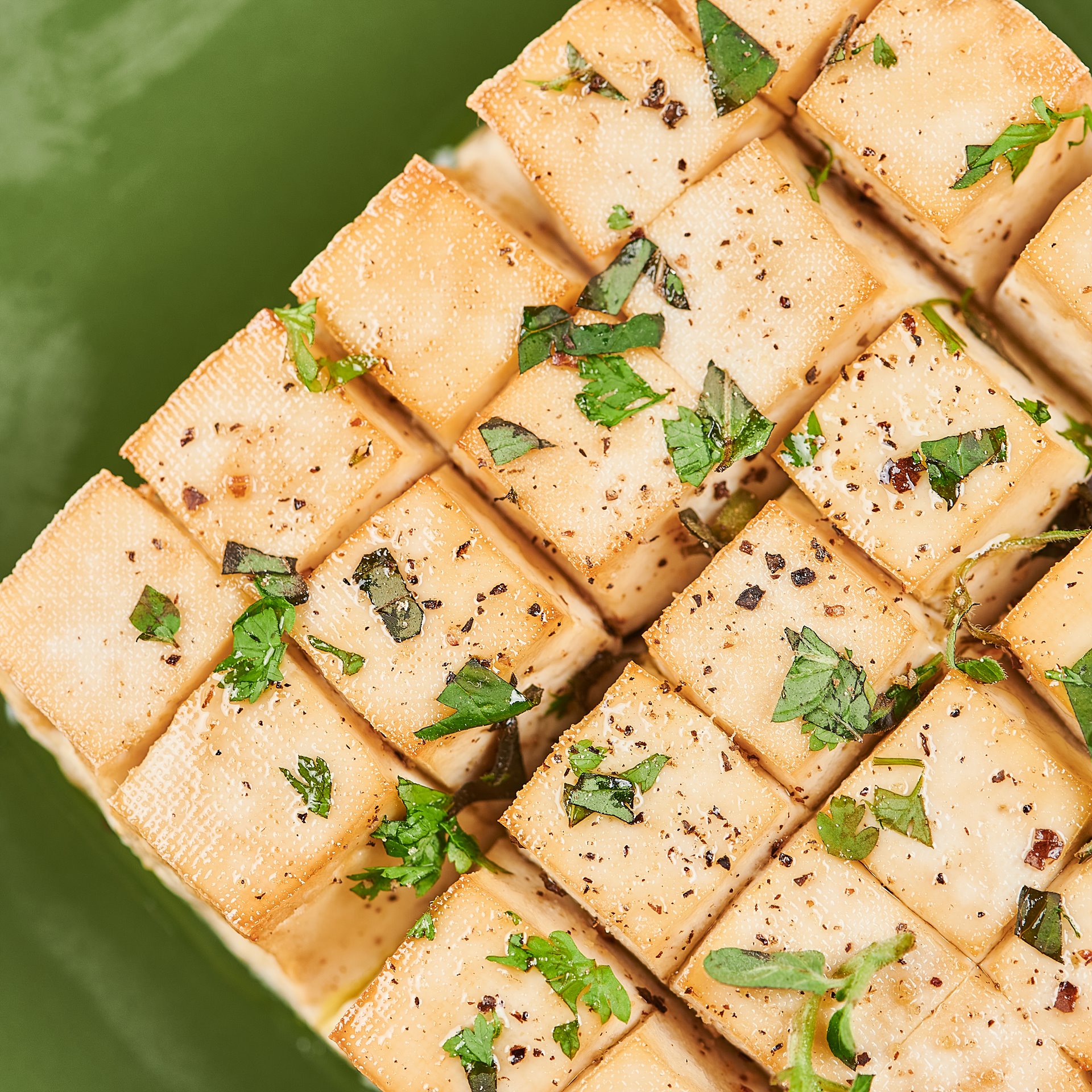 칼집 낸 두부에 연두, 오일, 후추 골고루 발라 구워주면 끝!