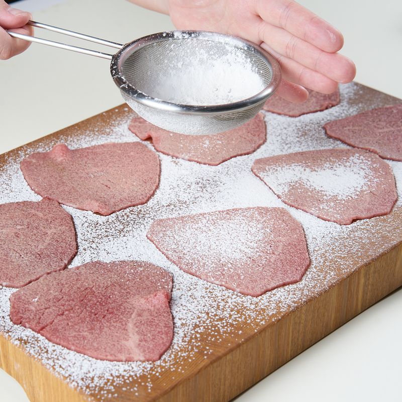 저렇게 체를 이용해서 가루를 뿌리면 진짜 얇게 입혀지겠어요..! 배우고갑니다 !!