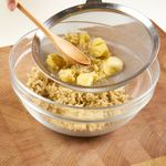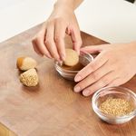 체에 내린 밤에 꿀과 계피가루, 소금을 넣고 잘 섞은 후, 본래 밤 모양을 만들어 주세요. 깨나 호박씨, 가루 등으로 꾸며주면 완성!