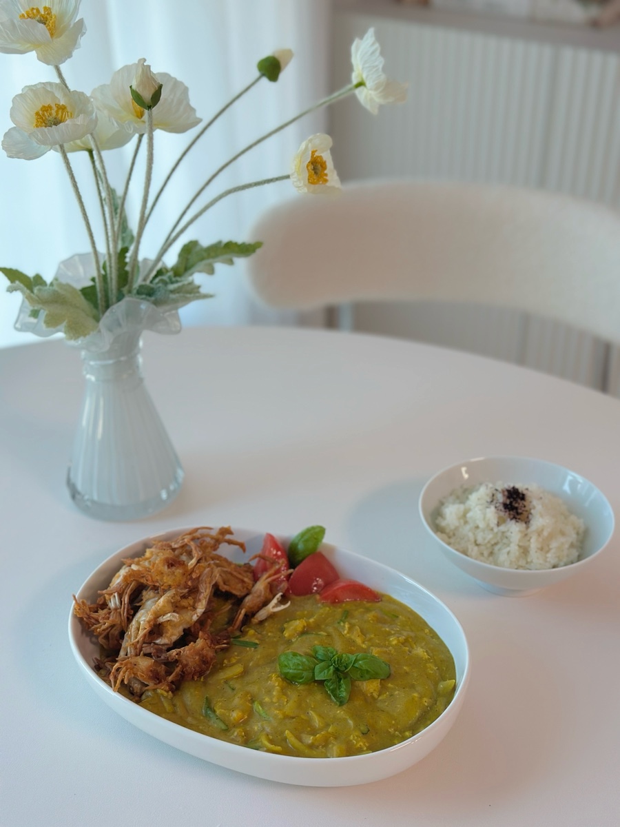 크리스피 게를 함께 곁들인 푸팟퐁커리 한끼이야기