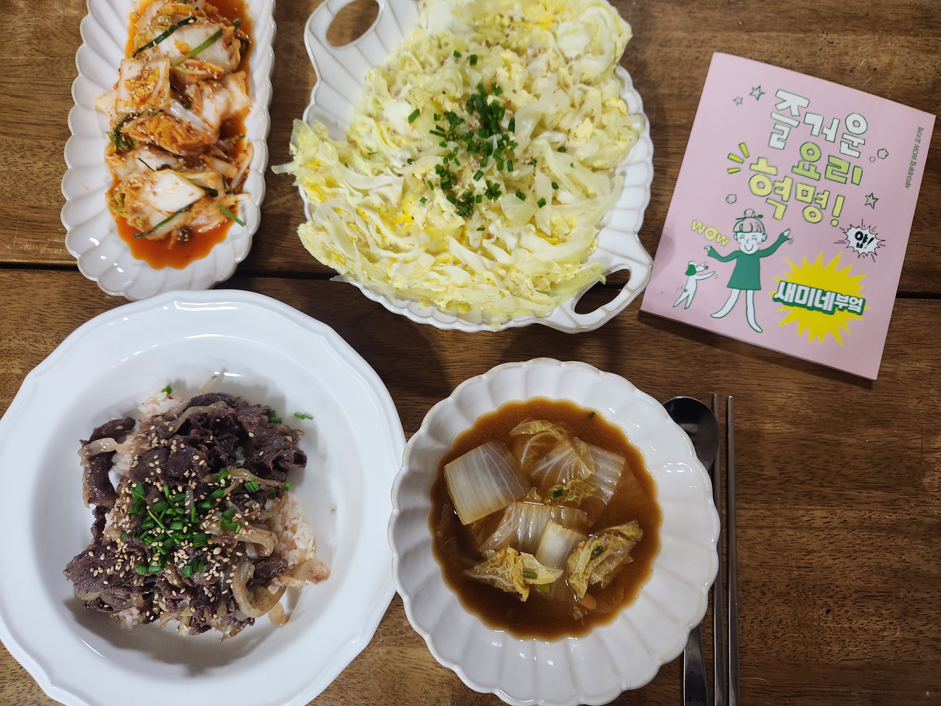 냉장고 파먹기/겉절이,배추된장국,달걀양배추찜전,소불고기덮밥 /1시간이면 완성!!