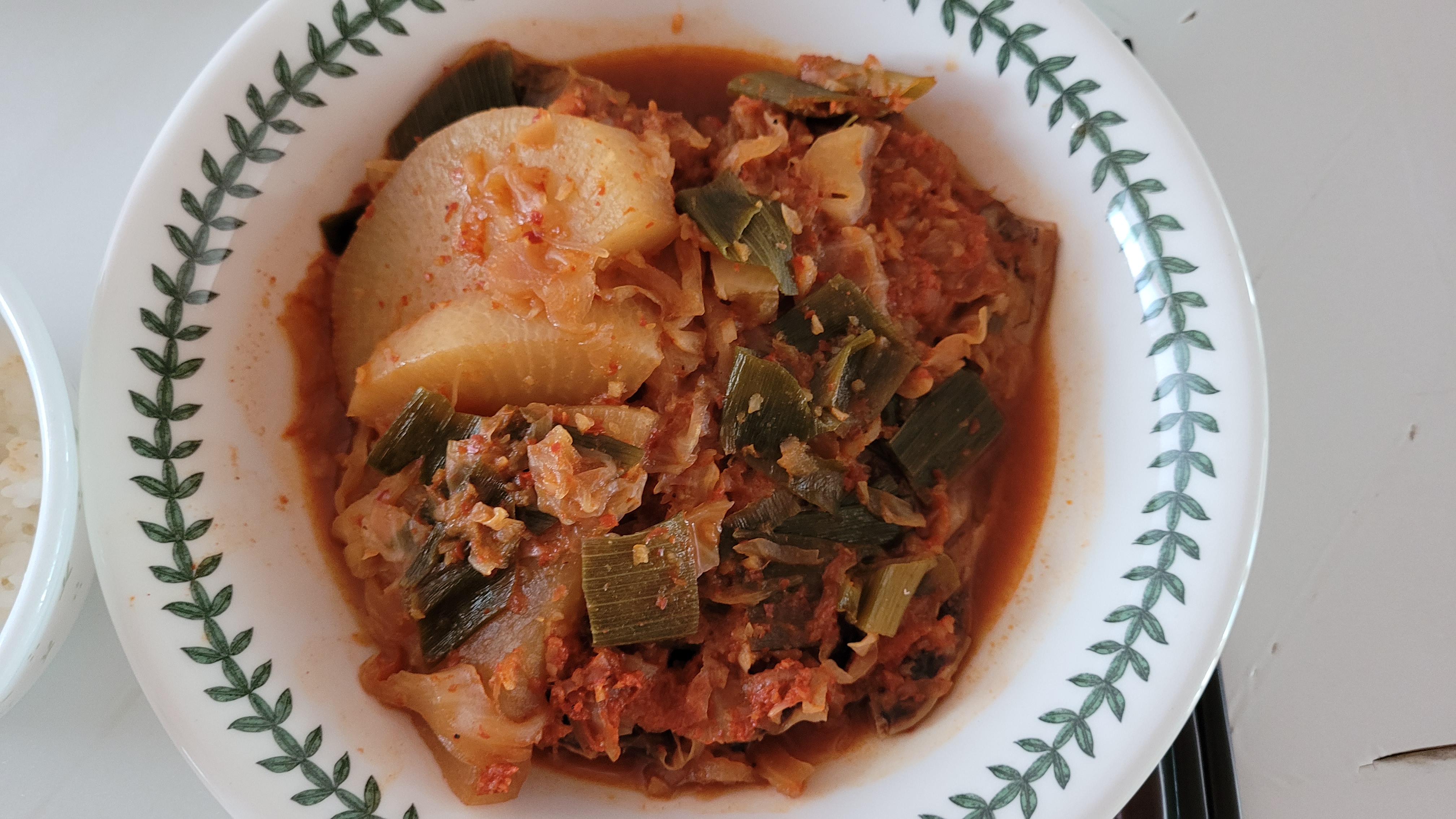 뜨끈한 떡만두국과 시원달콤한 깍두기