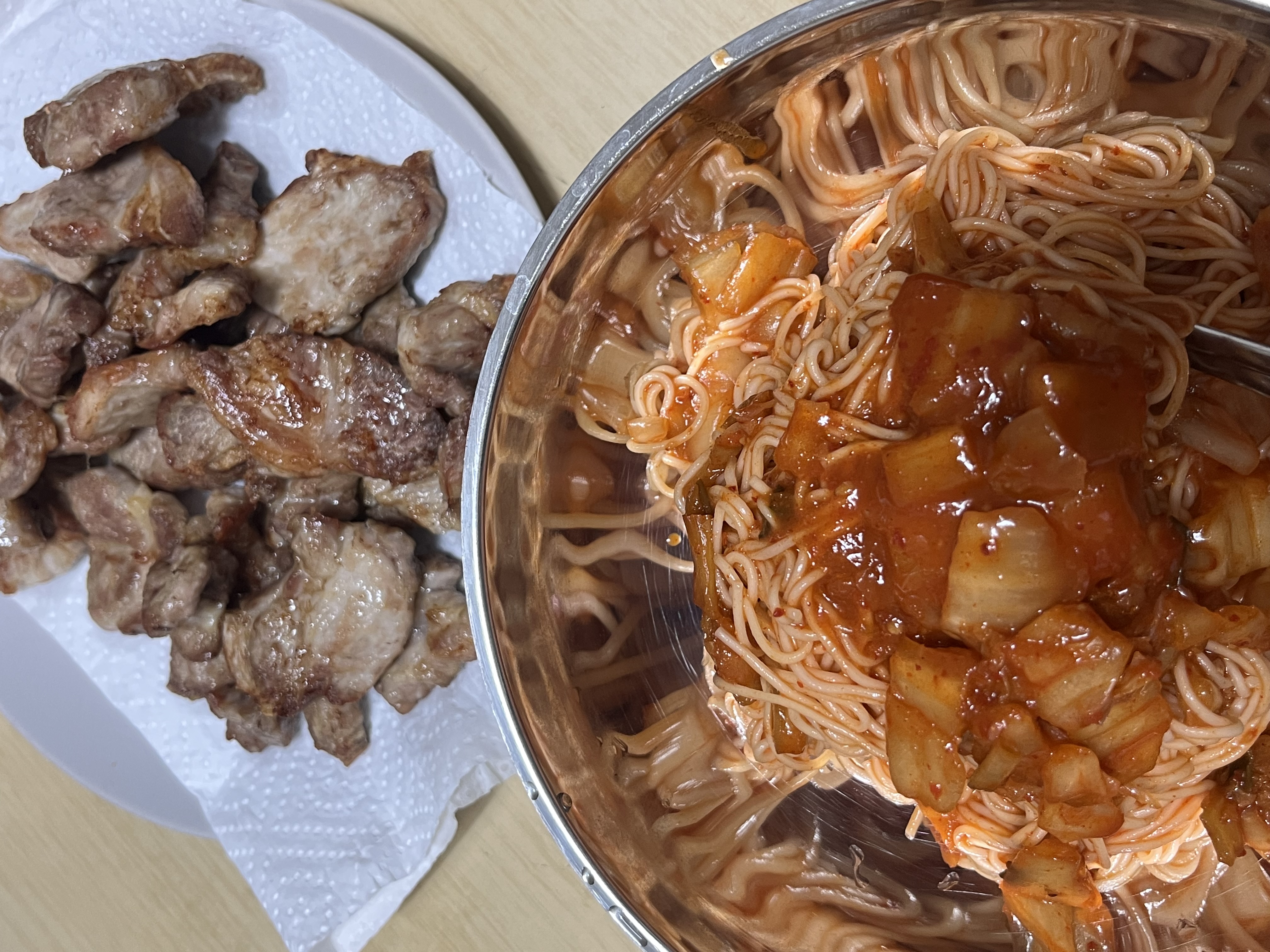 입맛 없을 때 간단하게 해먹는 김치비빔국수 & 목살구이 🥰