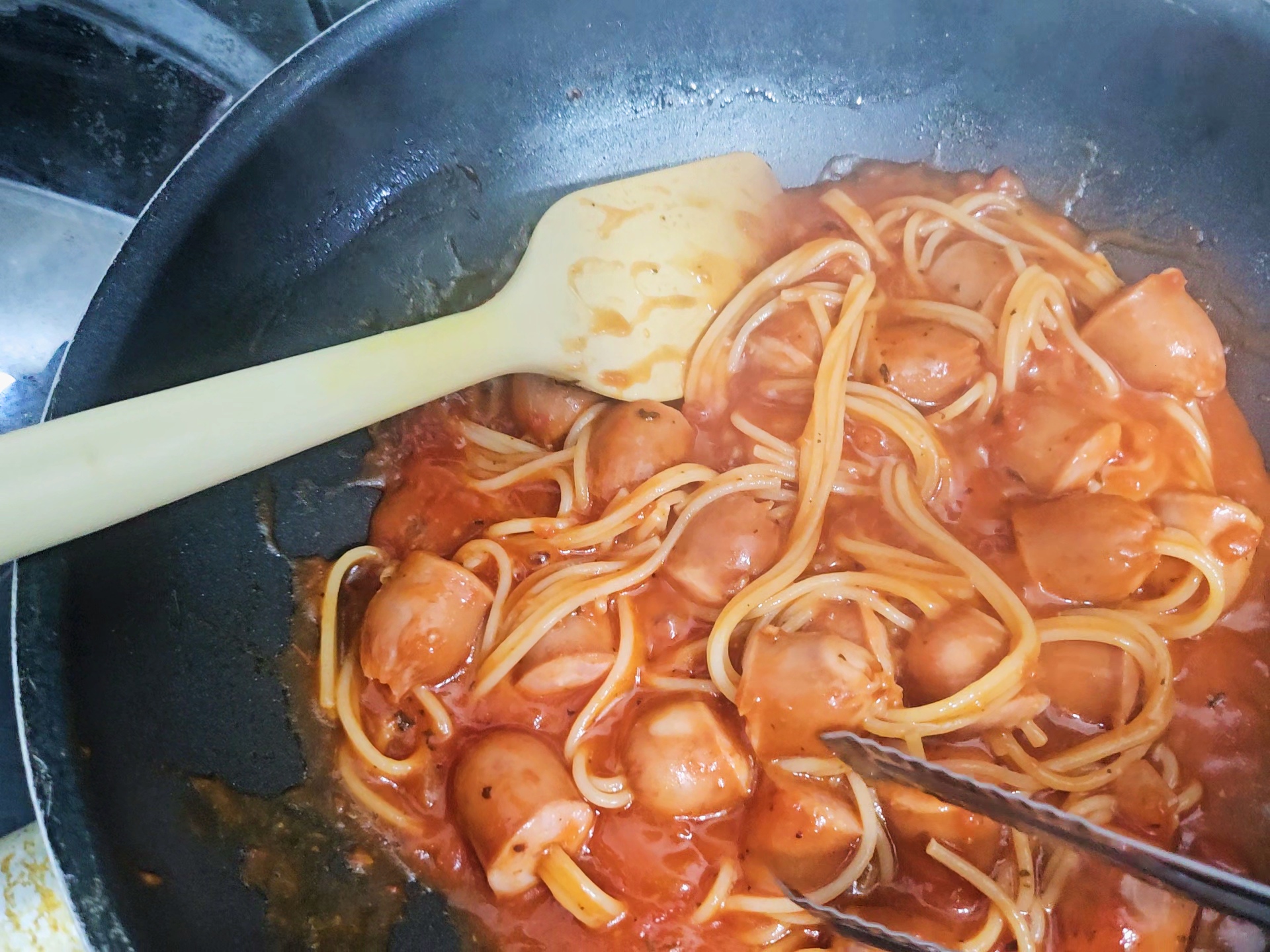 소시지와 스파게티면, 냉장고 속 재료로!