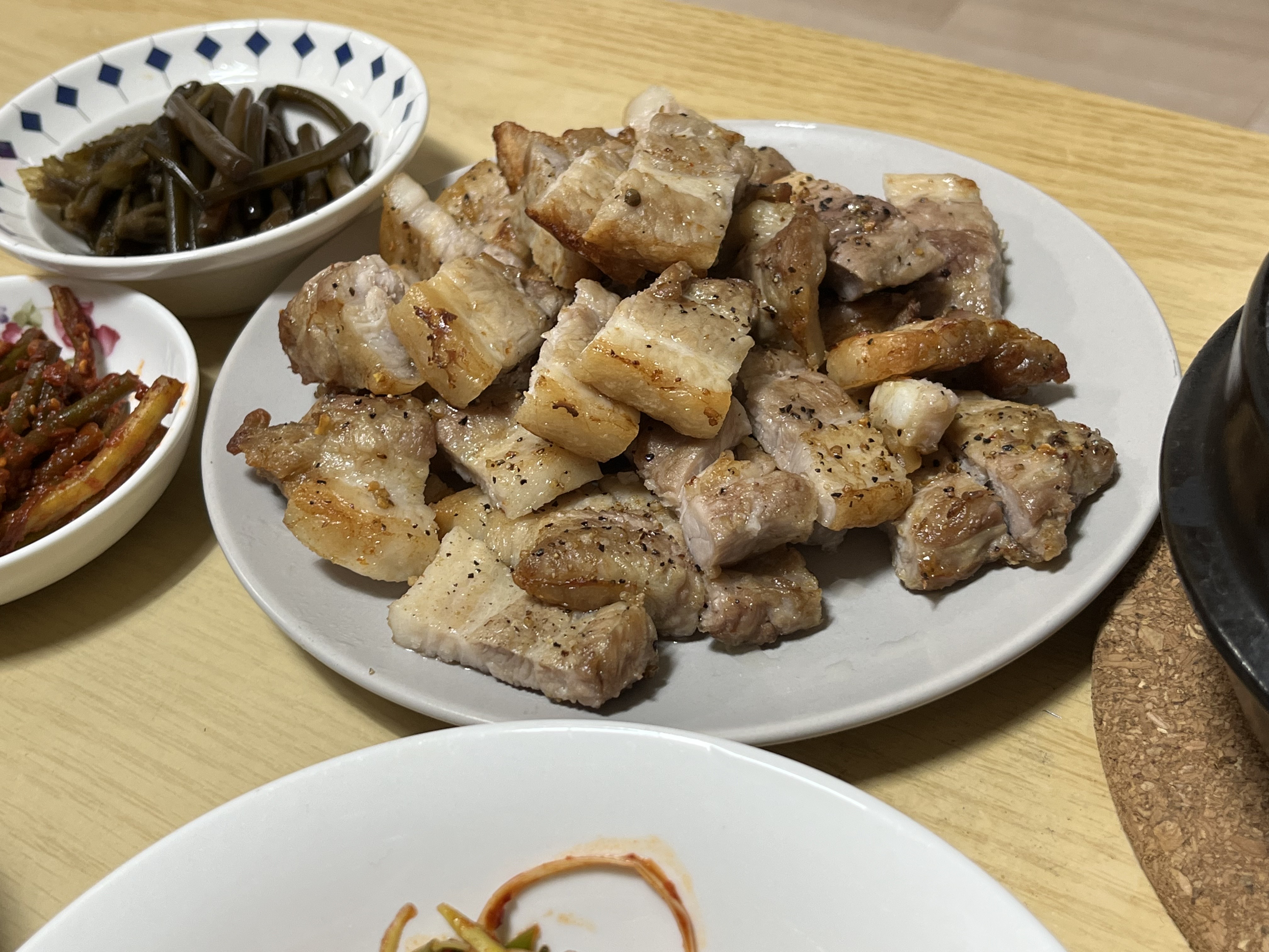 삼겹살 & 서리태 토장찌개 먹으면서 축구본 날❣️⚽
