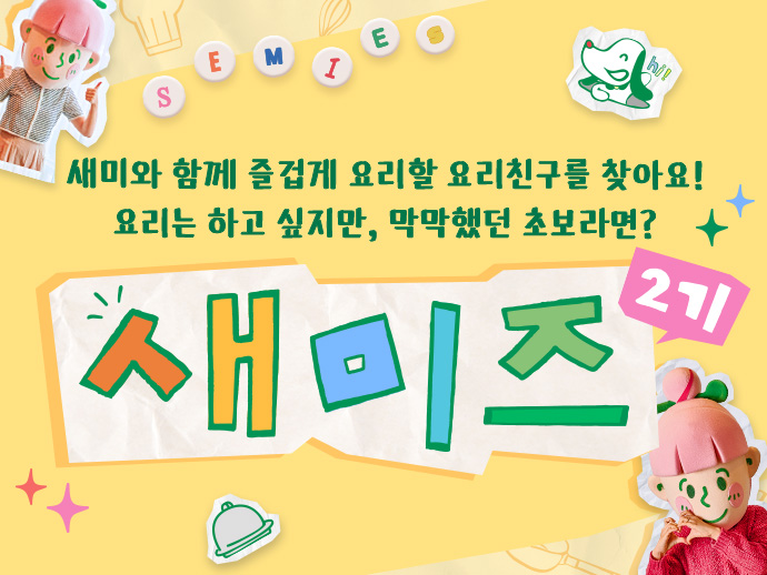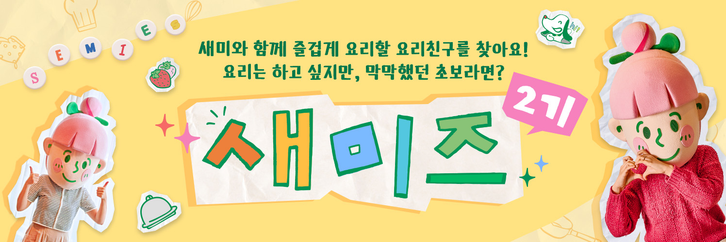 - 본 이벤트는 새미네부엌 플랫폼(www.semie.cooking)에서만 참여가 가능하며, 요리해요 게시판 내 필수 해시태그를 입력한 게시글 등 후, 이벤트 페이지 내 url 입력을 통한 이벤트 신청까지 모두 완료하셔야 참여로 간주됩니다.