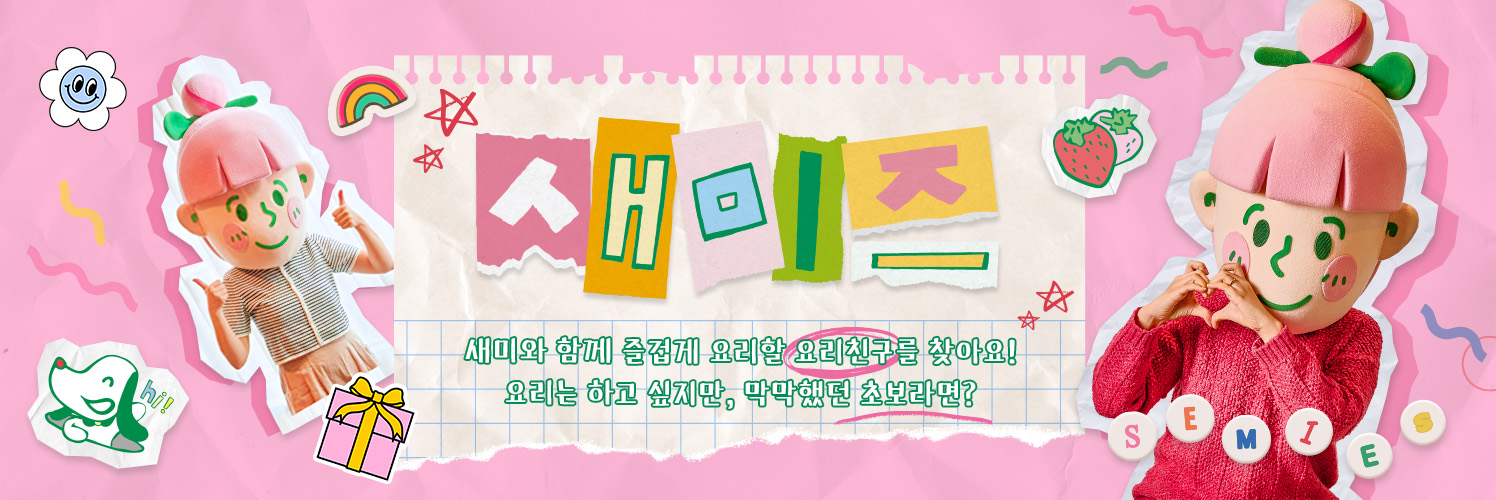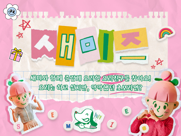 - 본 이벤트는 새미네부엌 플랫폼(www.semie.cooking)에서만 참여가 가능하며, 요리해요 게시판 내 필수 해시태그를 입력한 게시글 등 후, 이벤트 페이지 내 url 입력을 통한 이벤트 신청까지 모두 완료하셔야 참여로 간주됩니다.